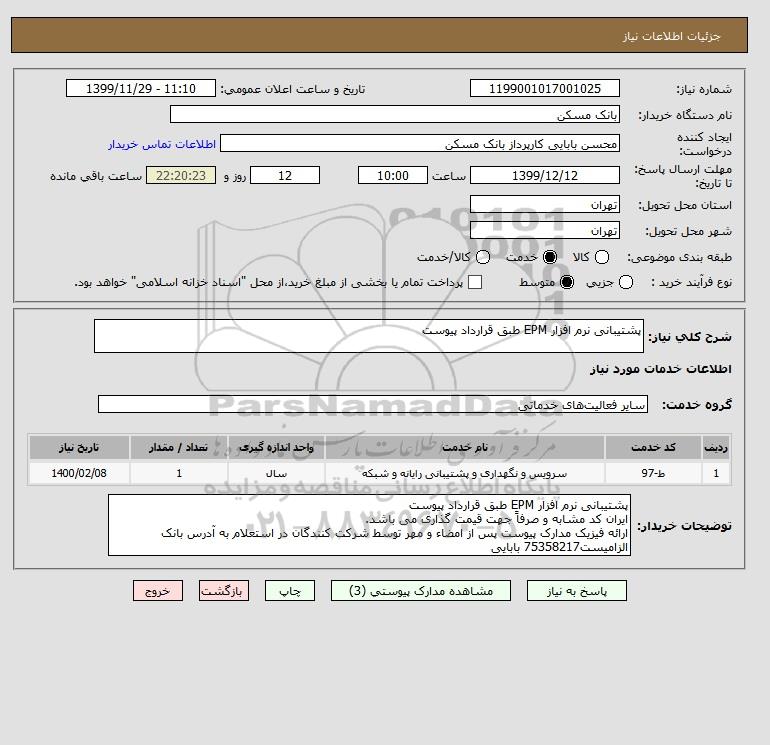 توضیحات خریدار:پشتیبانی نرم افزار EPM طبق قرارداد پیوست