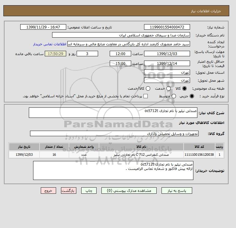 نام دستگاه خریدار:سازمان صدا و سیمای جمهوری اسلامی ایران