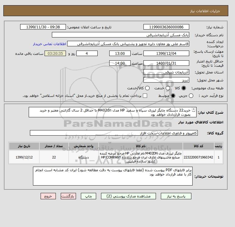 نام دستگاه خریدار:بانک مسکن آذربایجانشرقی