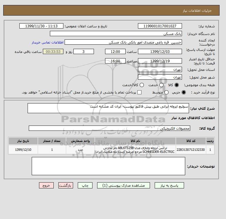 شرح کلی نیاز: سوئیچ ایزوله ایرانی طبق پیش فاکتور پیوست- ایران کد مشابه است