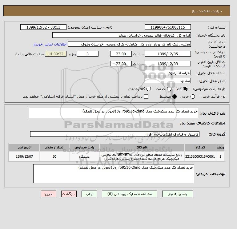شرح کلی نیاز: خرید تعداد 25 عدد میکروتیک مدل rb951g-2hnd روتر(تحویل در محل نقدی)