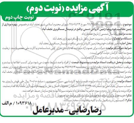 موضوع: در خصوص بهره برداری از زمین نظافت خودروها (زمین کارواش دستی) واقع در ترمینال مسافربری نجف اباد