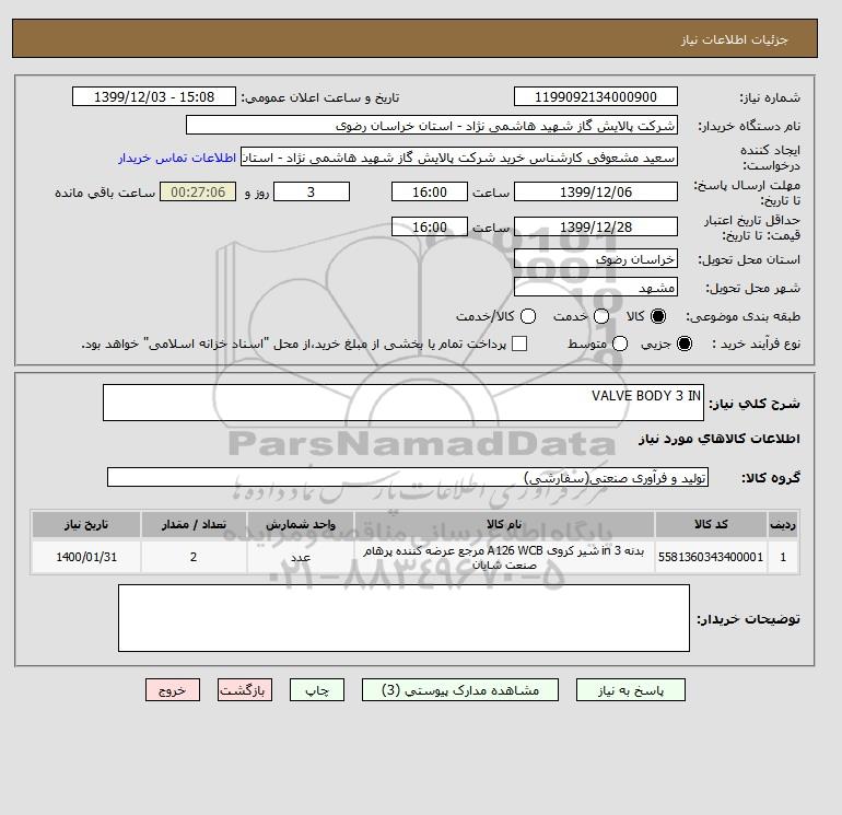 نام دستگاه خریدار:شرکت پالایش گاز شهید هاشمی نژاد - استان خراسان رضوی