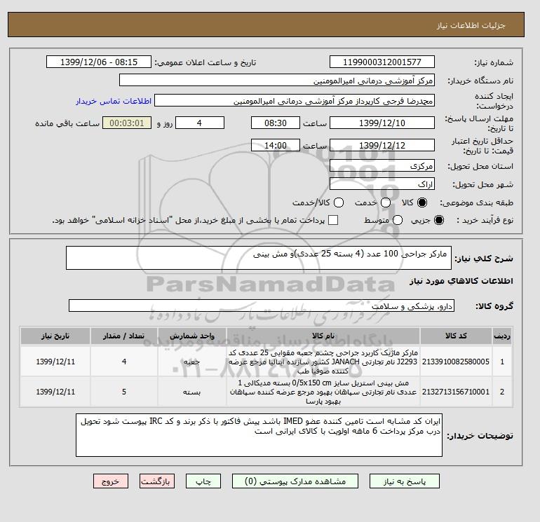 شرح کلی نیاز: مارکر جراحی 100 عدد (4 بسته 25 عددی)و مش بینی