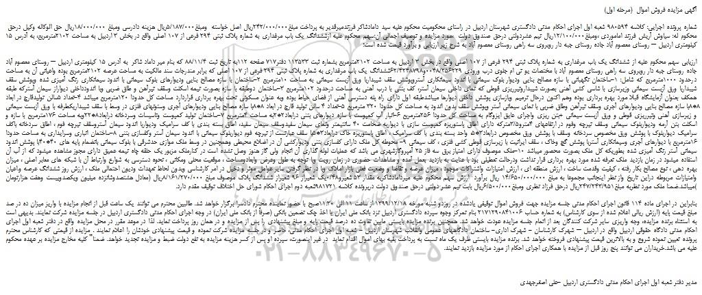 شعبه صادر کننده:شعبه اول اجرای احکام مدنی دادگستری شهرستان اردبیل/قدیم