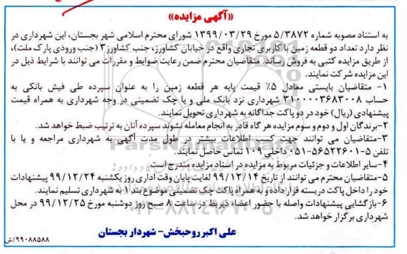 مزایده،مزایده فروش دو قطعه زمین با کاربری تجاری