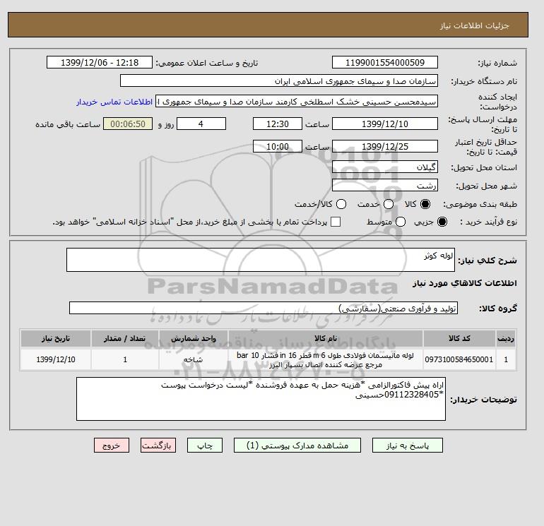 نام دستگاه خریدار:سازمان صدا و سیمای جمهوری اسلامی ایران