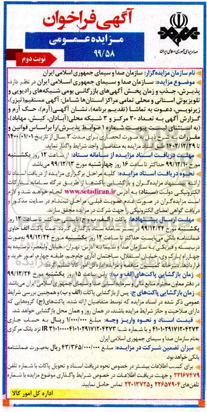 آگهی فراخوان مزایده عمومی 99/58 ؟ نوبت دوم