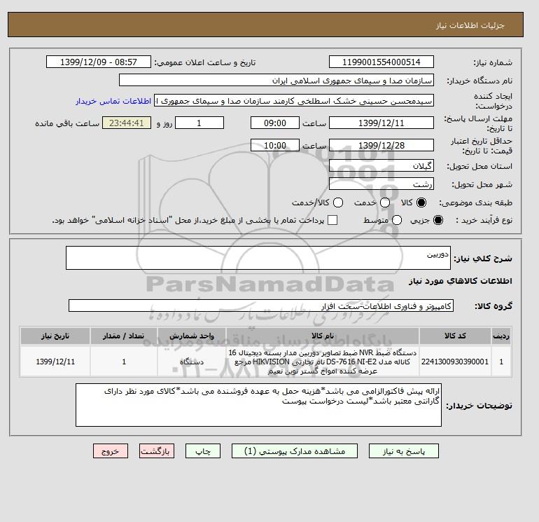 نام دستگاه خریدار:سازمان صدا و سیمای جمهوری اسلامی ایران