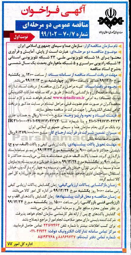 نام سازمان مناقصه گزار: سازمان صدا و سیمای جمهوری اسلامی ایران