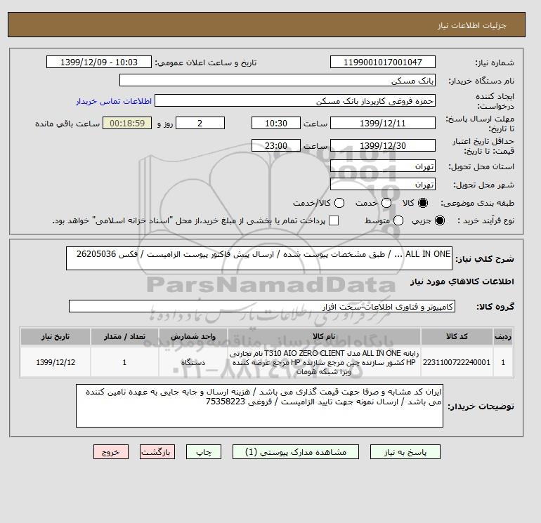 استعلام ALL IN ONE ... / طبق مشخصات پیوست شده / ارسال پیش فاکتور پیوست الزامیست / فکس 26205036, استعلام ALL IN ONE ... / طبق مشخصات پیوست شده / ارسال پیش فاکتور پیوست الزامیست / فکس 26205036