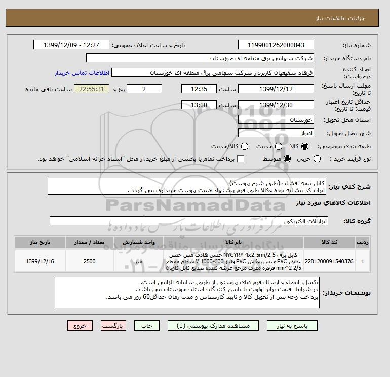 شرح کلی نیاز: کابل نیمه افشان (طبق شرح پیوست)