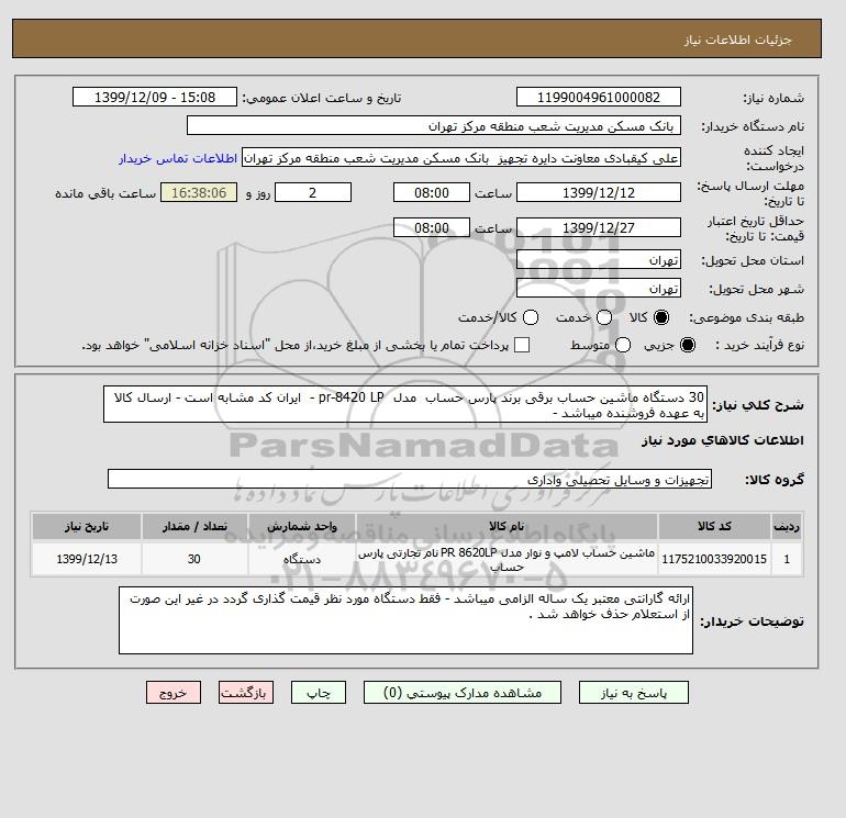 استعلام 30 دستگاه ماشین حساب برقی برند پارس حساب مدل pr-8420 LP - ایران کد مشابه است - ارسال کالا به عهده فروشنده میباشد -, استعلام 30 دستگاه ماشین حساب برقی برند پارس حساب مدل pr-8420 LP - ایران کد مشابه است - ارسال کالا به عهده فروشنده میباشد -