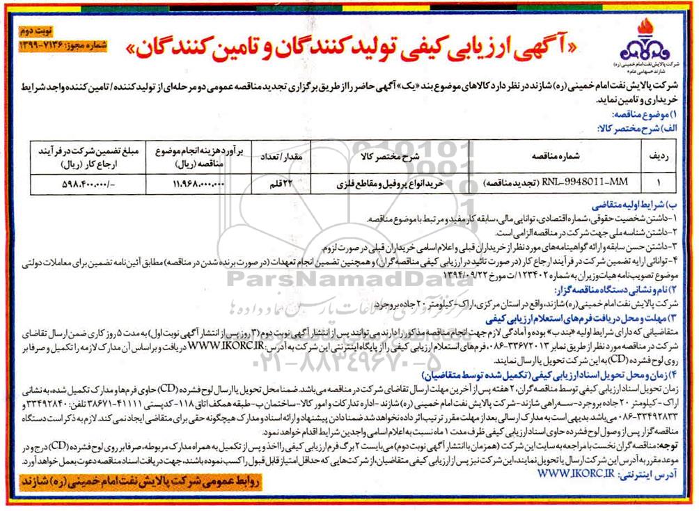 3 RNL-9948011- تجدید مناقصه MM خرید انواع پروفیل و مقاطع فلزی 22 قلم 11.968.000.000 598.400.000