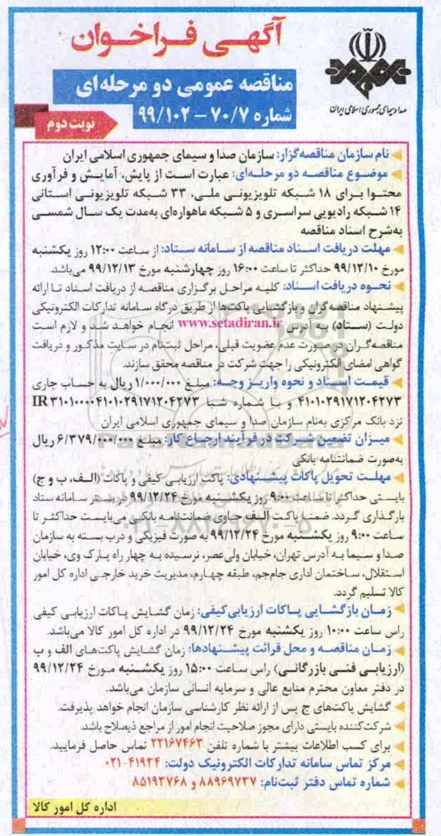 نام سازمان مناقصه گزار: سازمان صدا و سیمای جمهوری اسلامی ایران