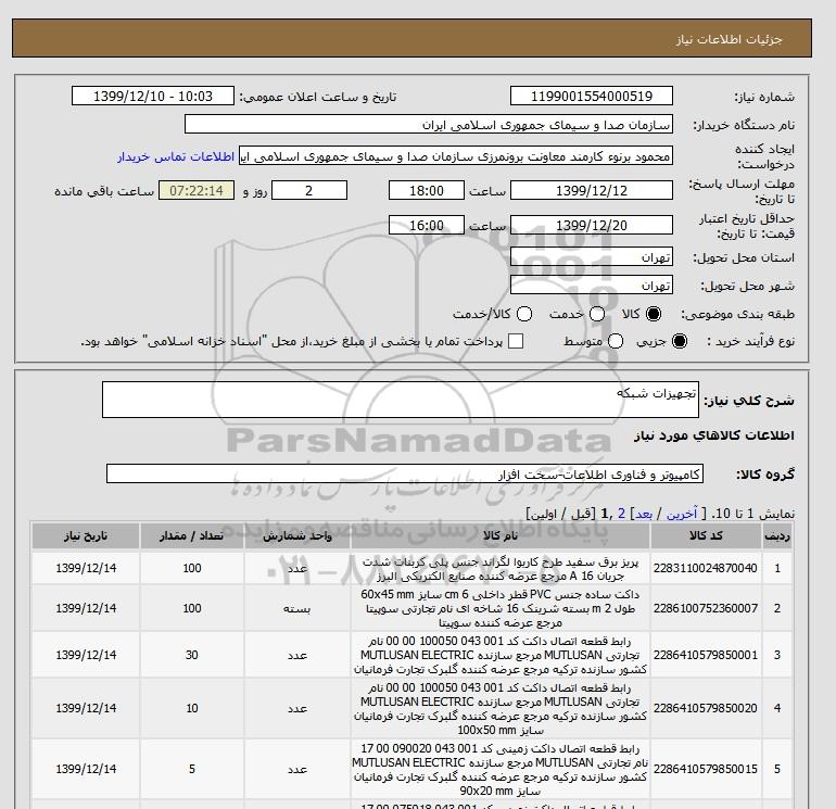 توضیحات خریدار:تجهیزات شبکه و داکت