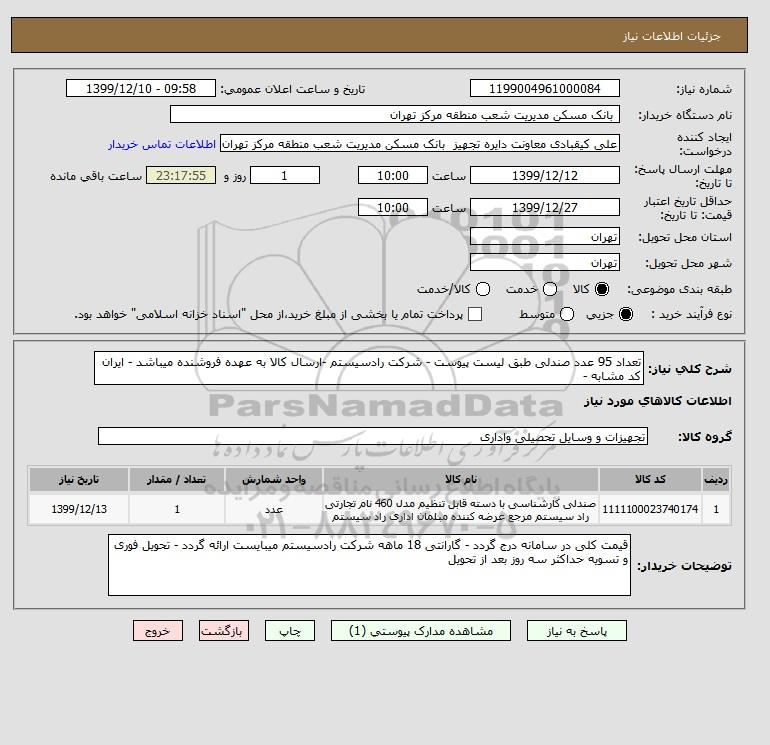 نام دستگاه خریدار: بانک مسکن مدیریت شعب منطقه مرکز تهران