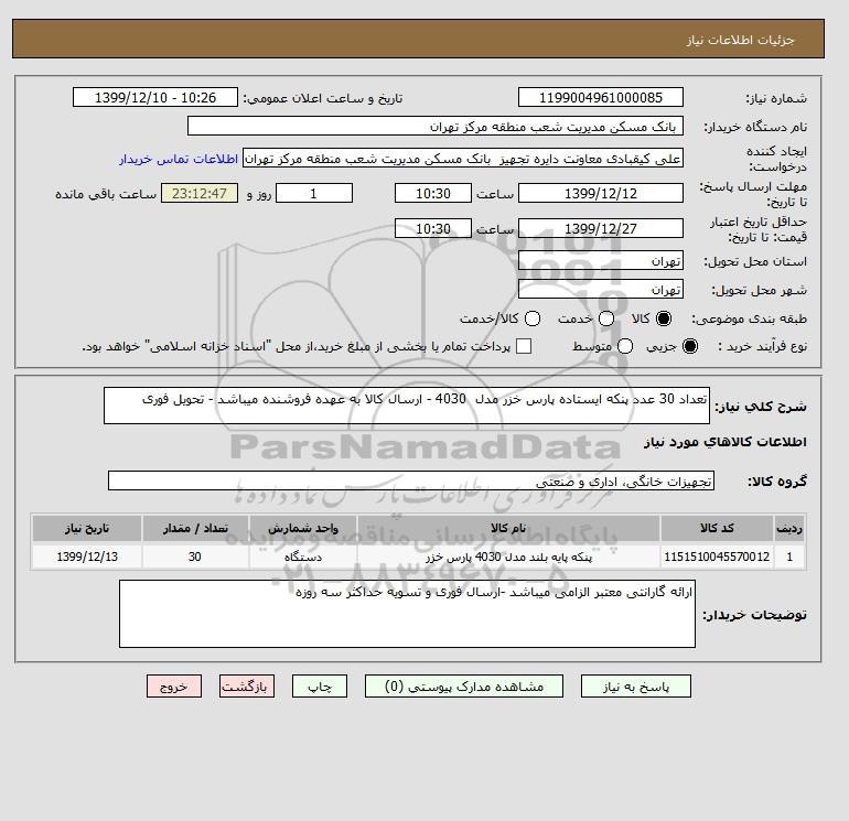 نام دستگاه خریدار: بانک مسکن مدیریت شعب منطقه مرکز تهران
