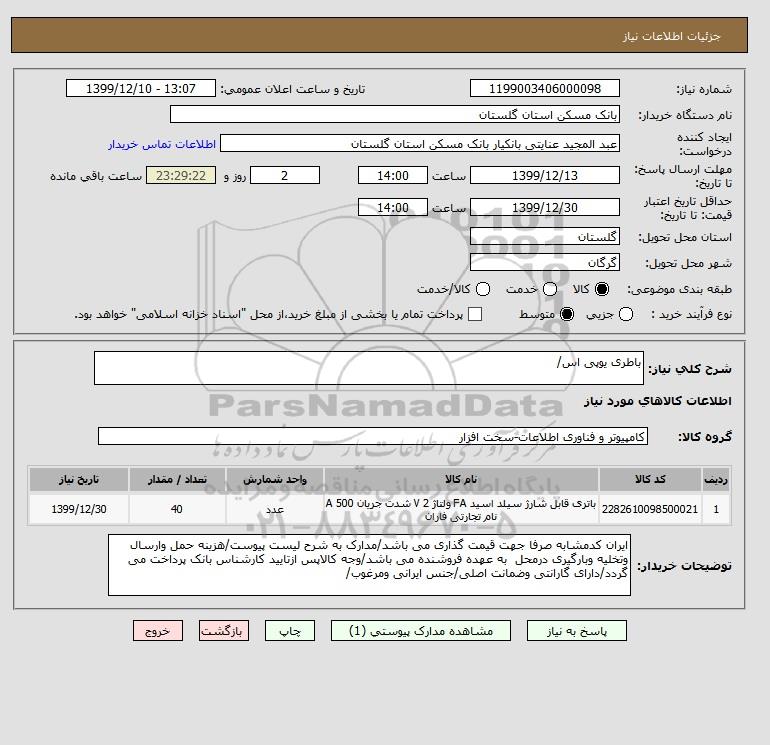 نام دستگاه خریدار:بانک مسکن استان گلستان