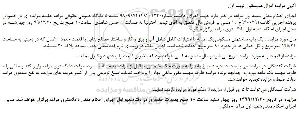 آگهی مزایده اموال غیرمنقول نوبت اول