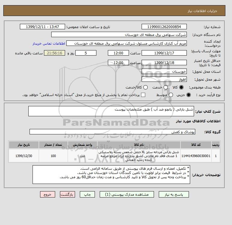 نام دستگاه خریدار:شرکت سهامی برق منطقه ای خوزستان