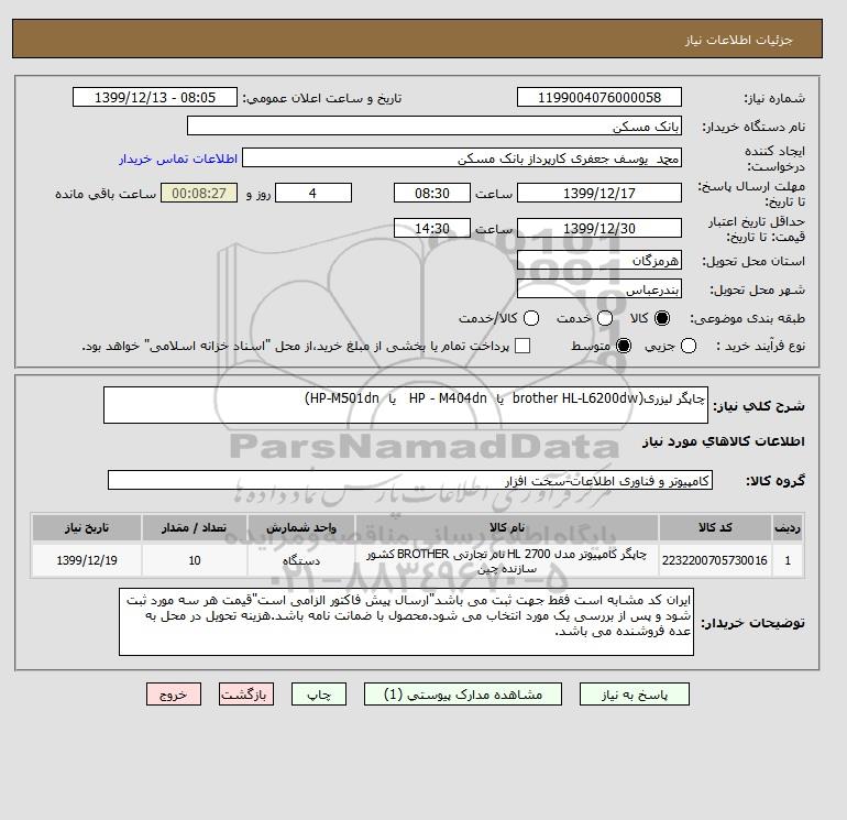 شرح کلی نیاز: چاپگر لیزری(brother HL-L6200dw یا HP - M404dn یا HP-M501dn)