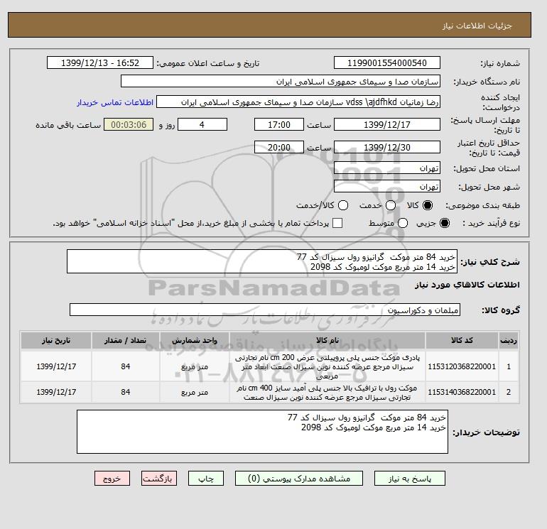 نام دستگاه خریدار:سازمان صدا و سیمای جمهوری اسلامی ایران