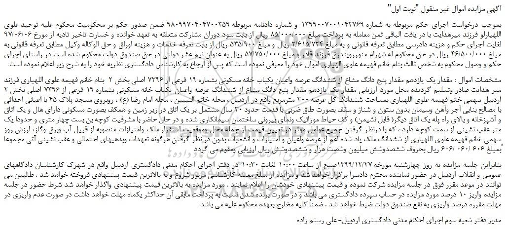 "آگهی مزایده اموال غیر منقول "نوبت اول