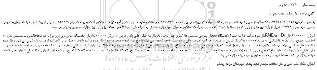 ( آگهی مزایده اموال منقول نوبت دوم  )