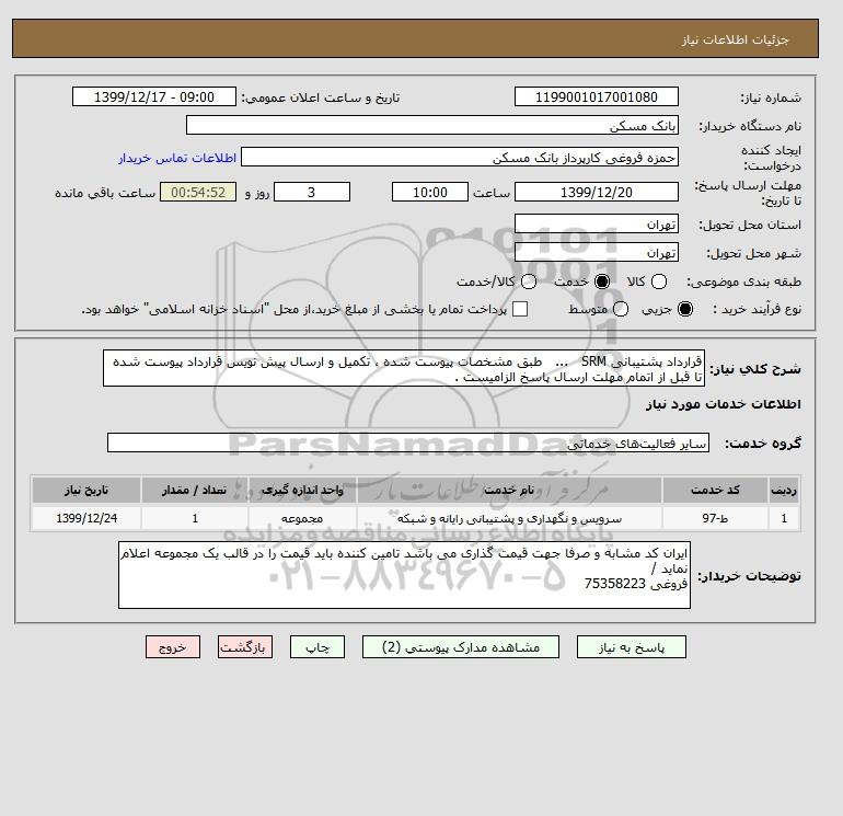 شرح کلی نیاز: قرارداد پشتیبانی SRM ... طبق مشخصات پیوست شده ، تکمیل و ارسال پیش نویس قرارداد پیوست شده تا قبل از اتمام مهلت ارسال پاسخ الزامیست .