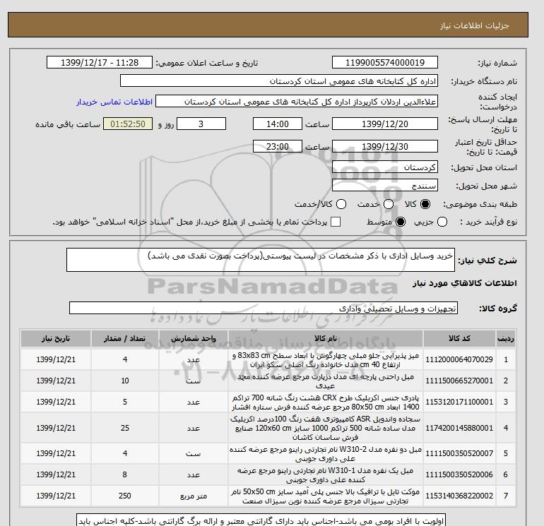 شرح کلی نیاز: خرید وسایل اداری با ذکر مشخصات در لیست پیوستی(پرداخت بصورت نقدی می باشد)