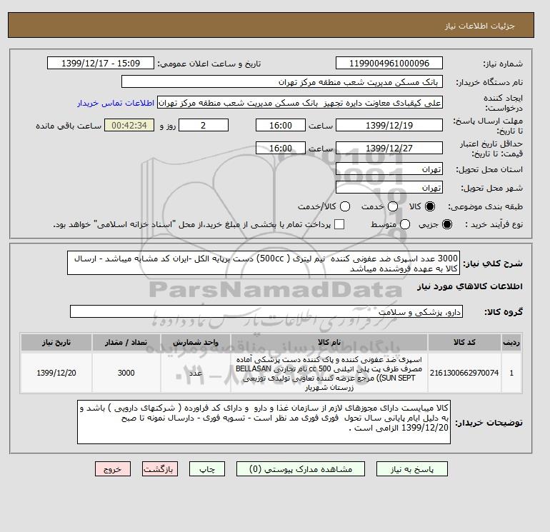 نام دستگاه خریدار: بانک مسکن مدیریت شعب منطقه مرکز تهران