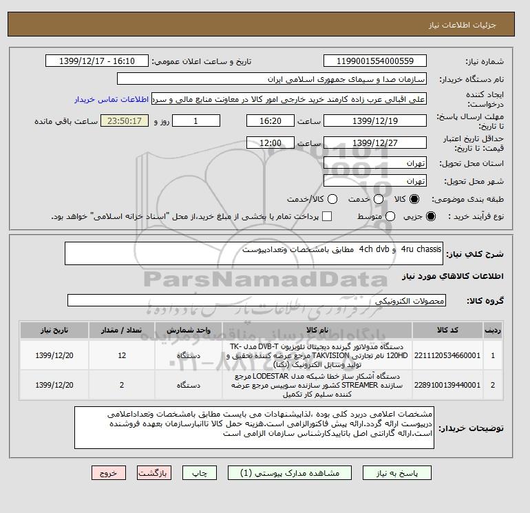 شرح کلی نیاز: 4ru chassis و 4ch dvb مطابق بامشخصات وتعدادپیوست