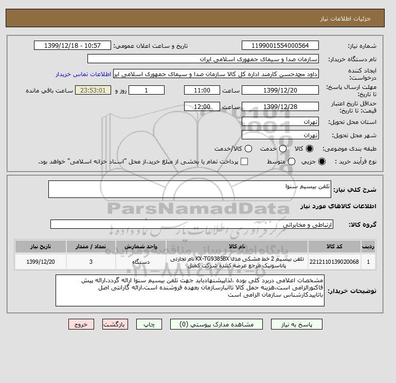 نام دستگاه خریدار:سازمان صدا و سیمای جمهوری اسلامی ایران