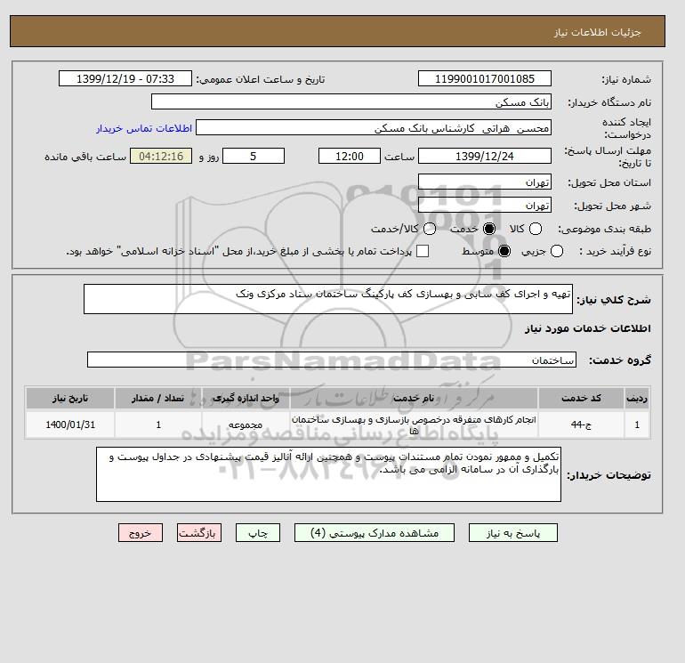 شرح کلی نیاز: تهیه و اجرای کف سابی و بهسازی کف پارکینگ ساختمان ستاد مرکزی ونک
