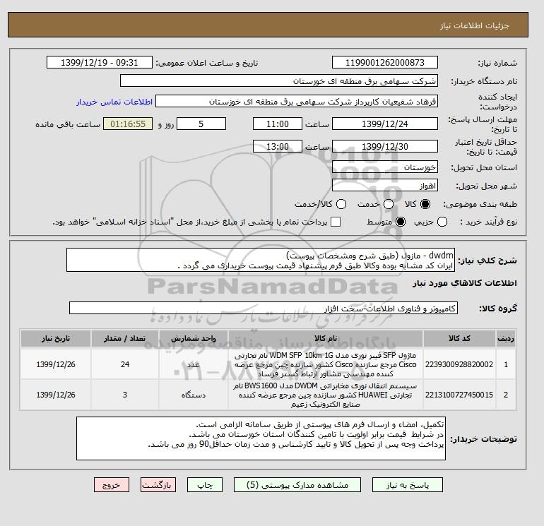 شرح کلی نیاز: dwdm - مازول (طبق شرح ومشخصات پیوست)