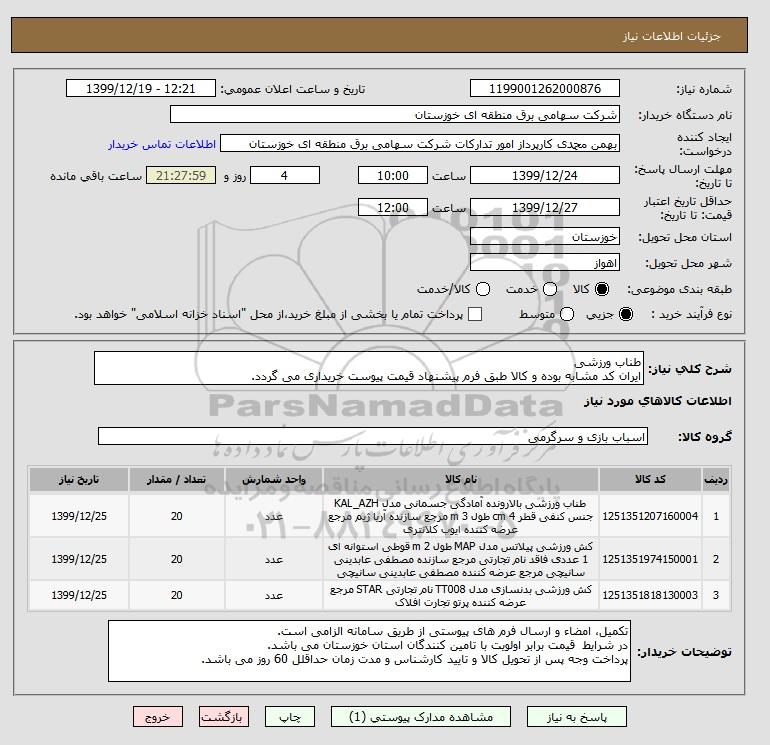 نام دستگاه خریدار:شرکت سهامی برق منطقه ای خوزستان