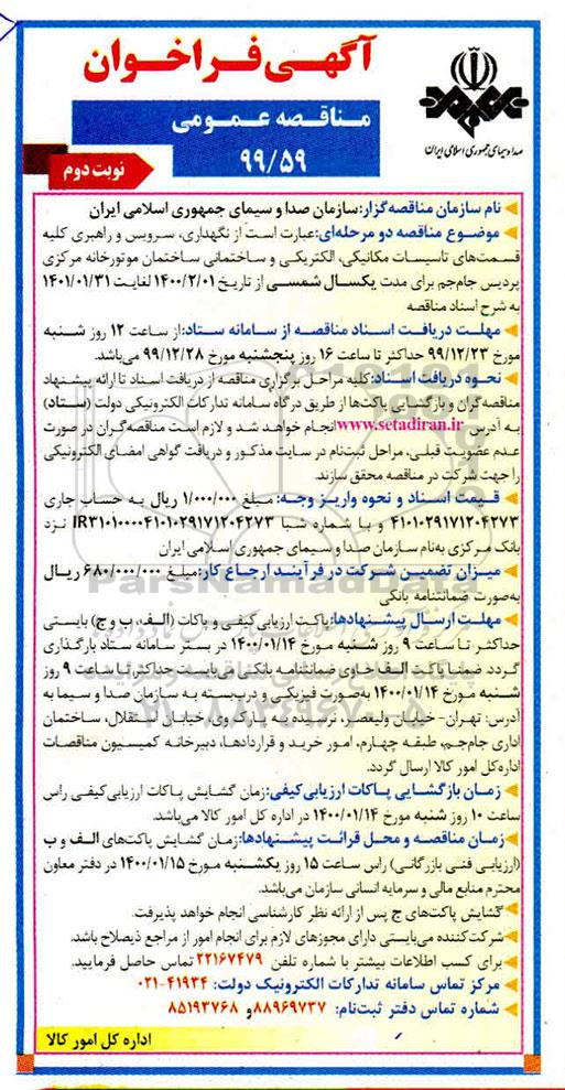 آگهی فراخوان مناقصه عمومی 99/59؟ نوبت دوم