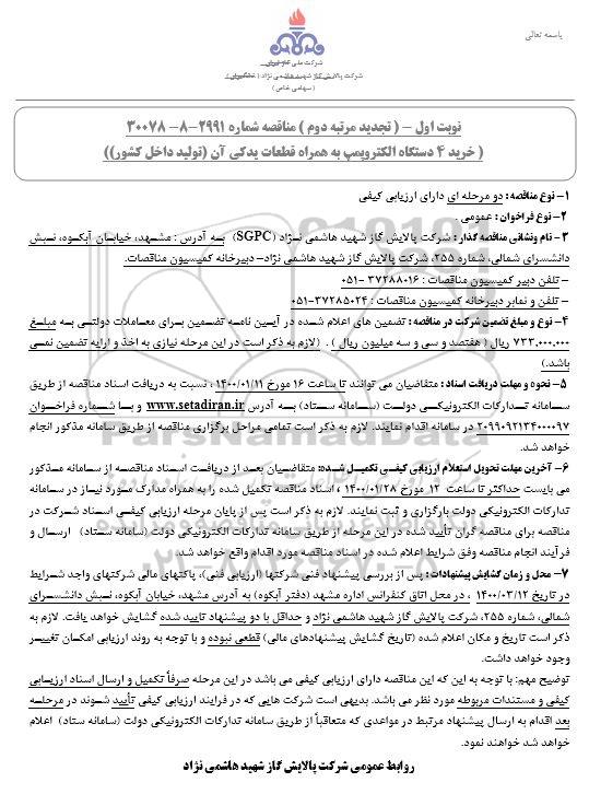 خرید 4 دستگاه الکتروپمپ به همراه قطعات یدکی آن (تولید داخل کشور )