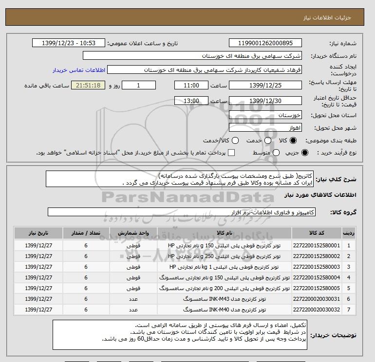 نام دستگاه خریدار:شرکت سهامی برق منطقه ای خوزستان