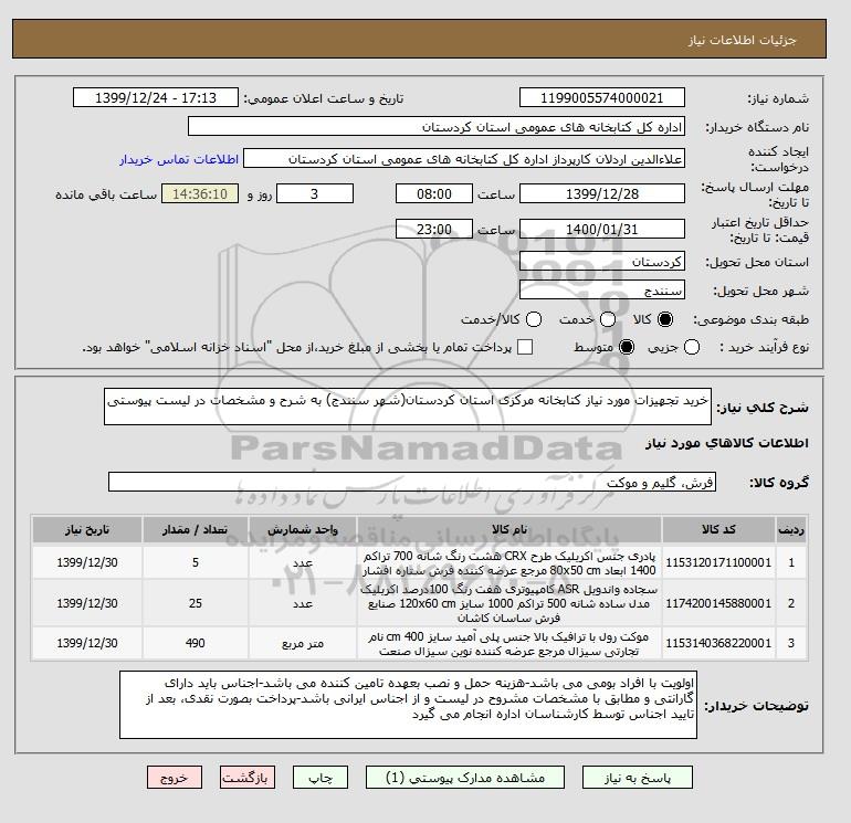 شرح کلی نیاز: خرید تجهیزات مورد نیاز کتابخانه مرکزی استان کردستان(شهر سنندج) به شرح و مشخصات در لیست پیوستی