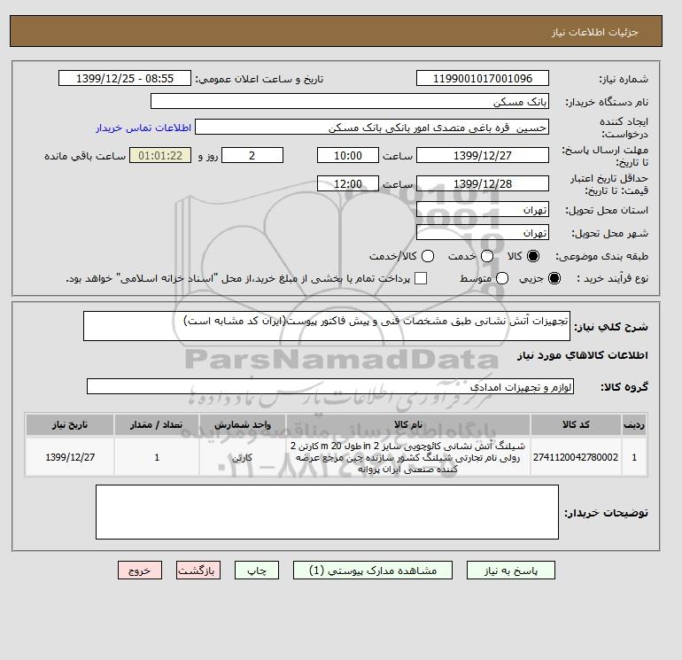 شرح کلی نیاز: تجهیزات آتش نشانی طبق مشخصات فنی و پیش فاکتور پیوست(ایران کد مشابه است)