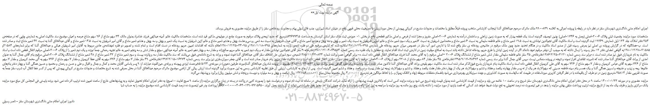 مزایده فروش پلاک 2006-اصلی (وصل به 1746-اصلی), مزایده،مزایده فروش پلاک 2006-اصلی (وصل به 1746-اصلی)