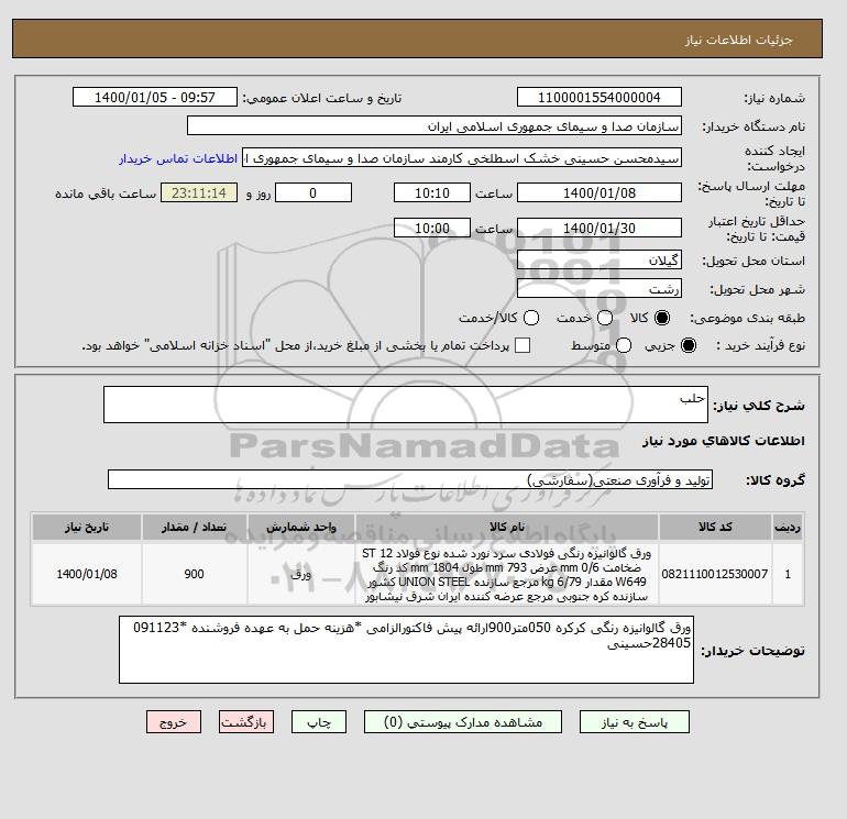 نام دستگاه خریدار:سازمان صدا و سیمای جمهوری اسلامی ایران