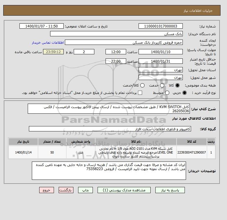 استعلام کابل KVM SWITCH / طبق مشخصات پیوست شده / ارسال پیش فاکتور پیوست الزامیست / فکس 26205036, استعلام کابل KVM SWITCH / طبق مشخصات پیوست شده / ارسال پیش فاکتور پیوست الزامیست / فکس 26205036