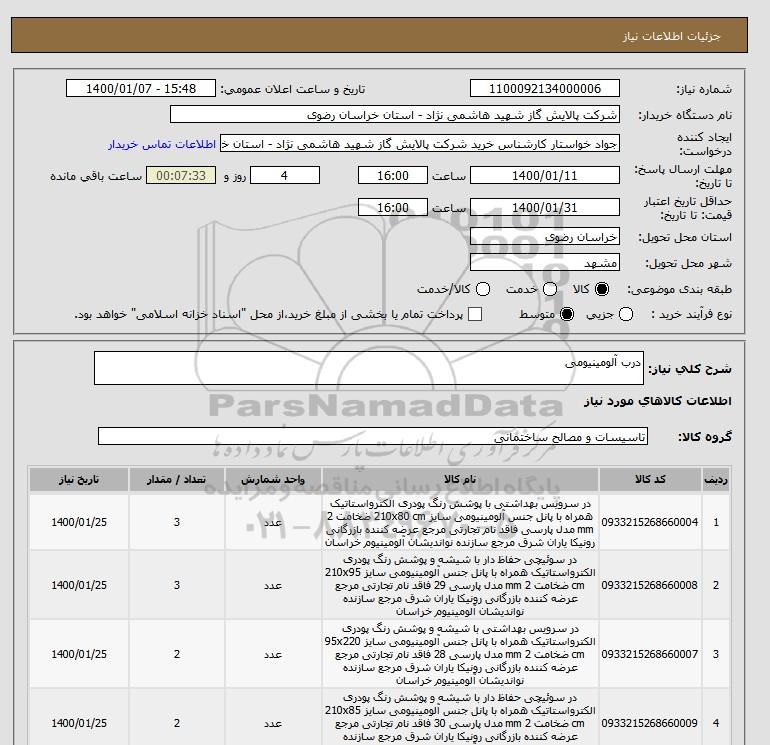 شرح کلی نیاز: درب آلومینیومی