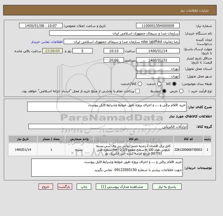 شرح کلی نیاز: خرید اقلام برقی و ... و اجرای پروژه طیق ضوابط وشرایط فایل پیوست