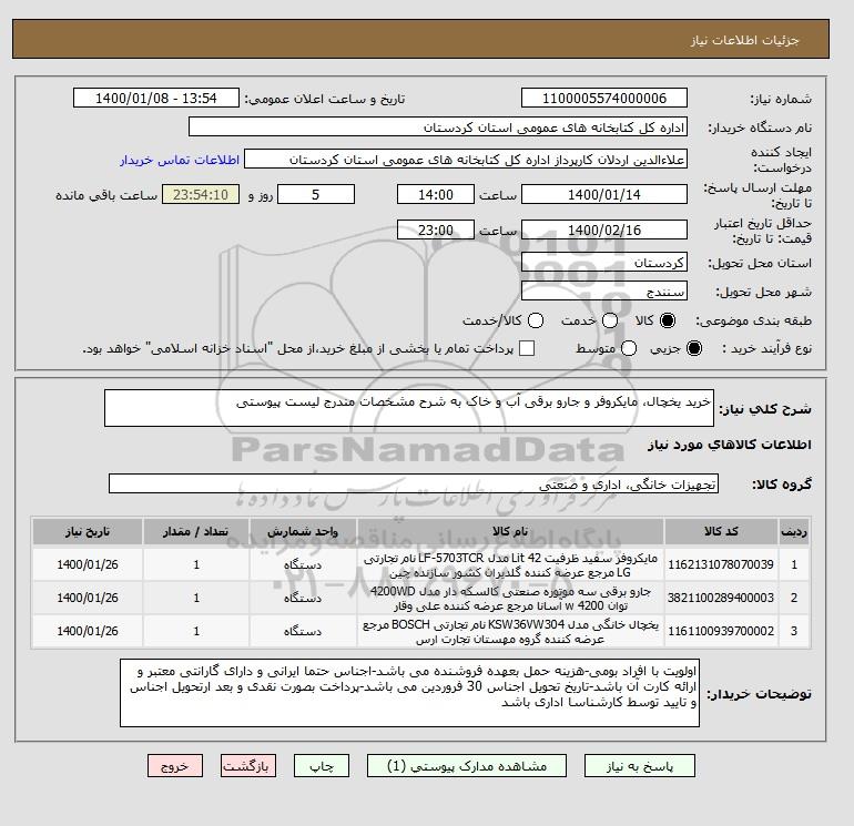 نام دستگاه خریدار:اداره کل کتابخانه های عمومی استان کردستان