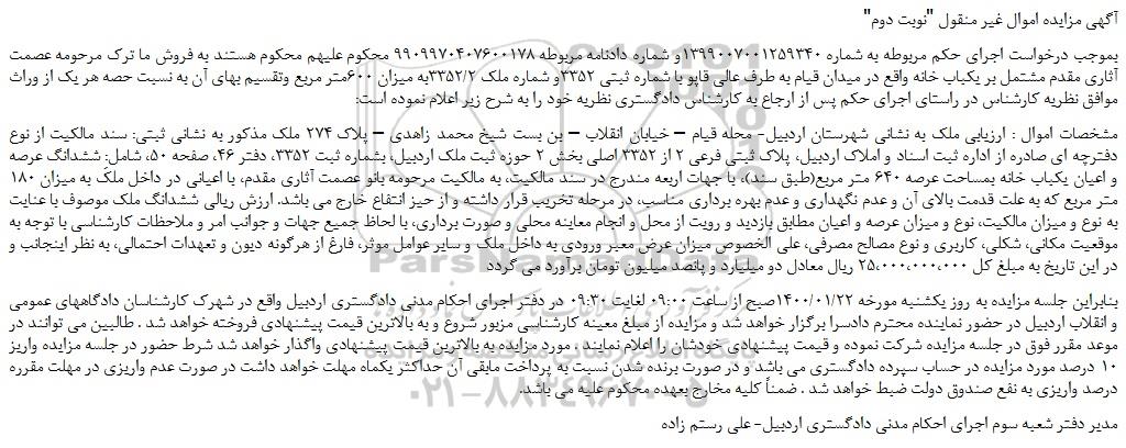 "آگهی مزایده اموال غیر منقول "نوبت دوم