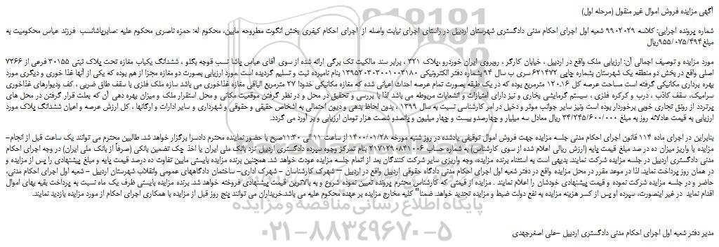 شعبه صادر کننده:شعبه اول اجرای احکام مدنی دادگستری شهرستان اردبیل/قدیم